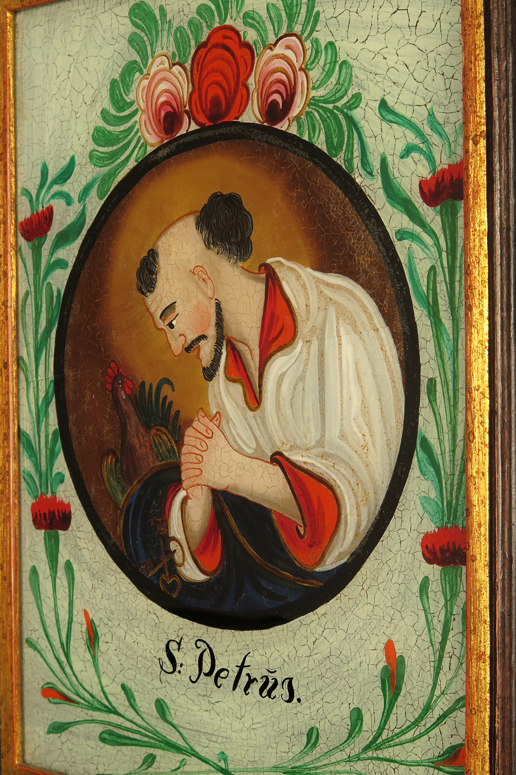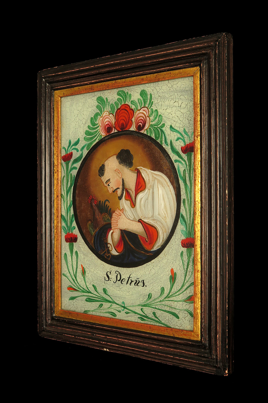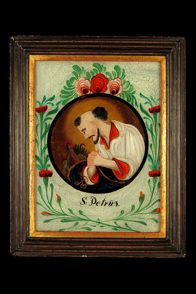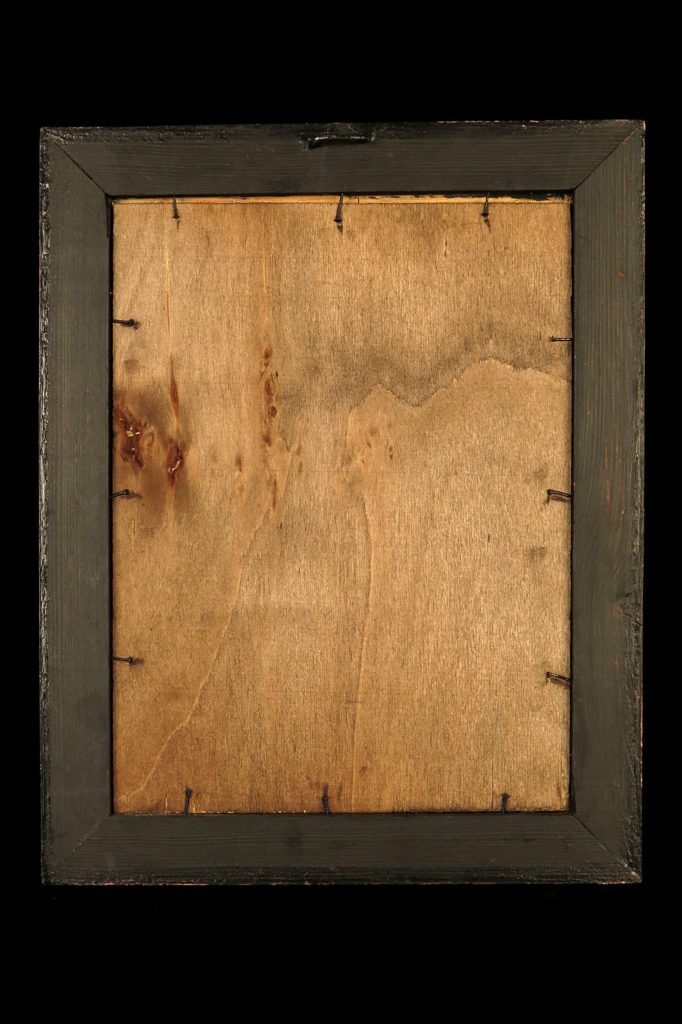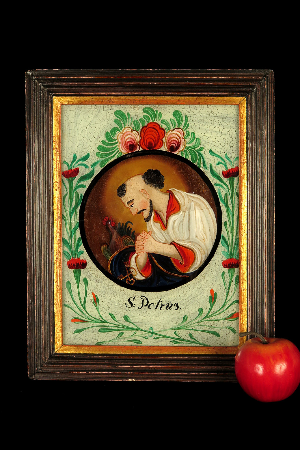 Ancien fixé, peinture inversée sous verre vers 1880.
