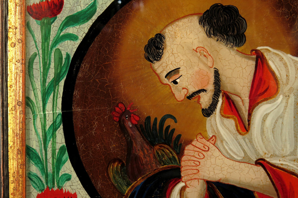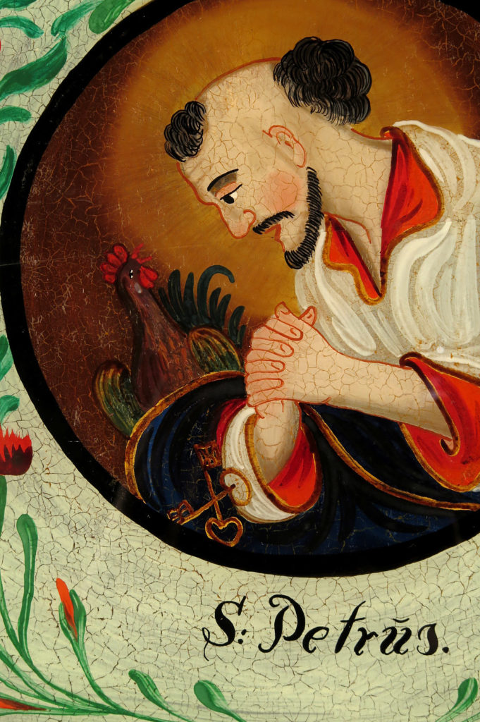 A l’effigie de Saint Pierre, présence de ses clefs et du coq.