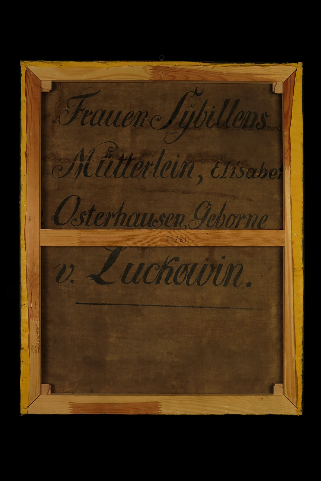Au verso on peut lire « Frauen Sybillens Mütterlein, Elisabeth Osterhausen, Geborne v. Luckewin »