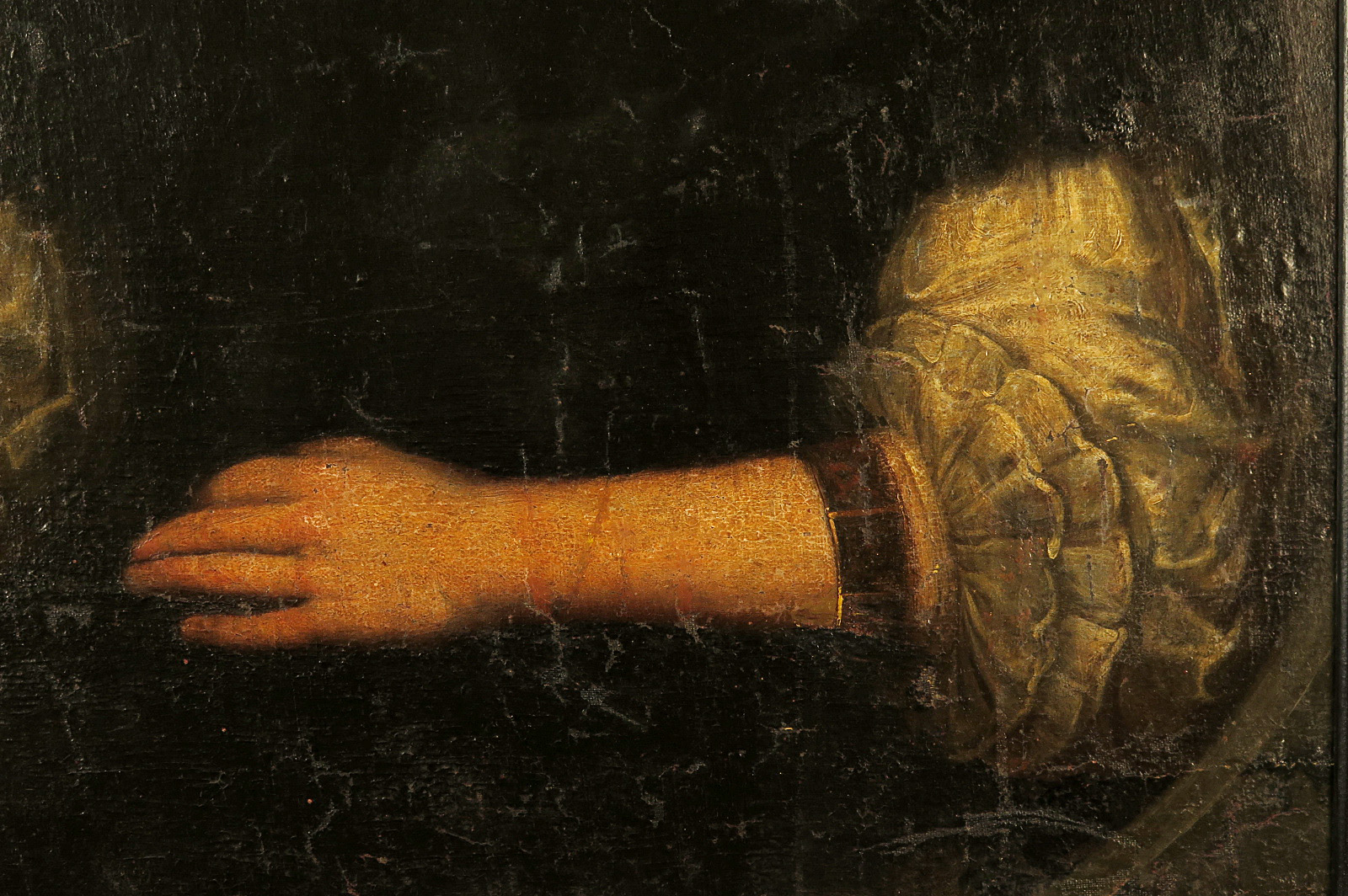 A été restauré en conservant son histoire, la couche picturale a été protégée par un verni adapté, pose de bandes de tension et nouveau châssis.