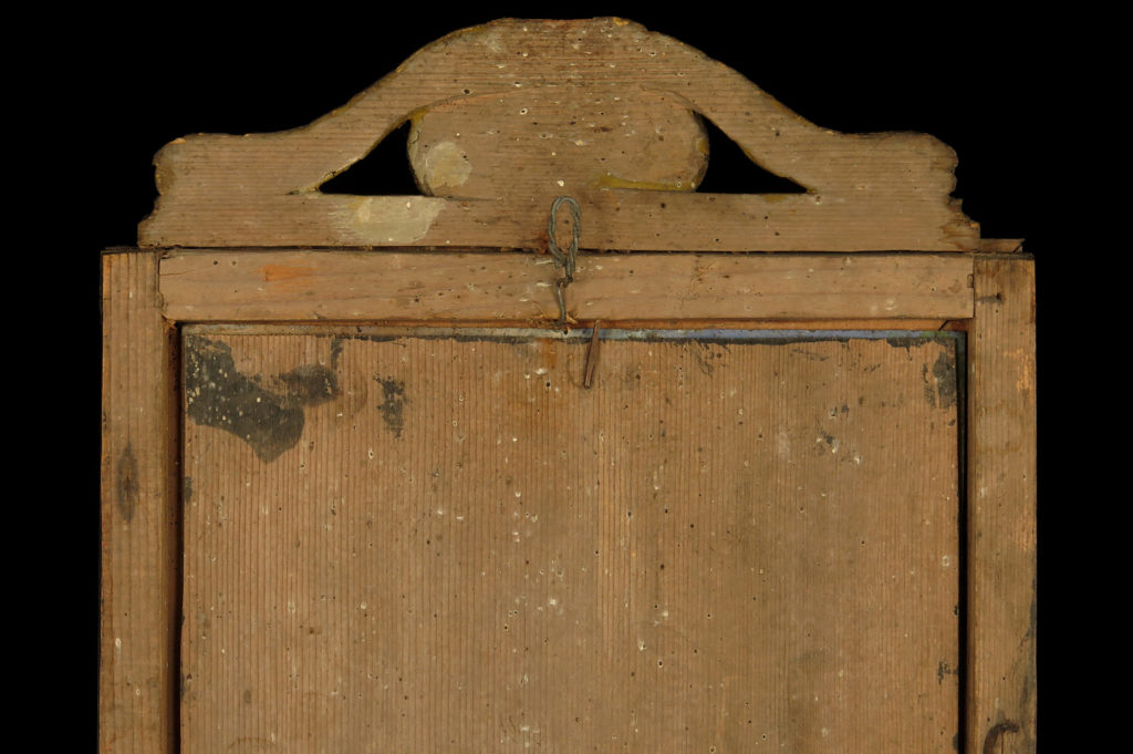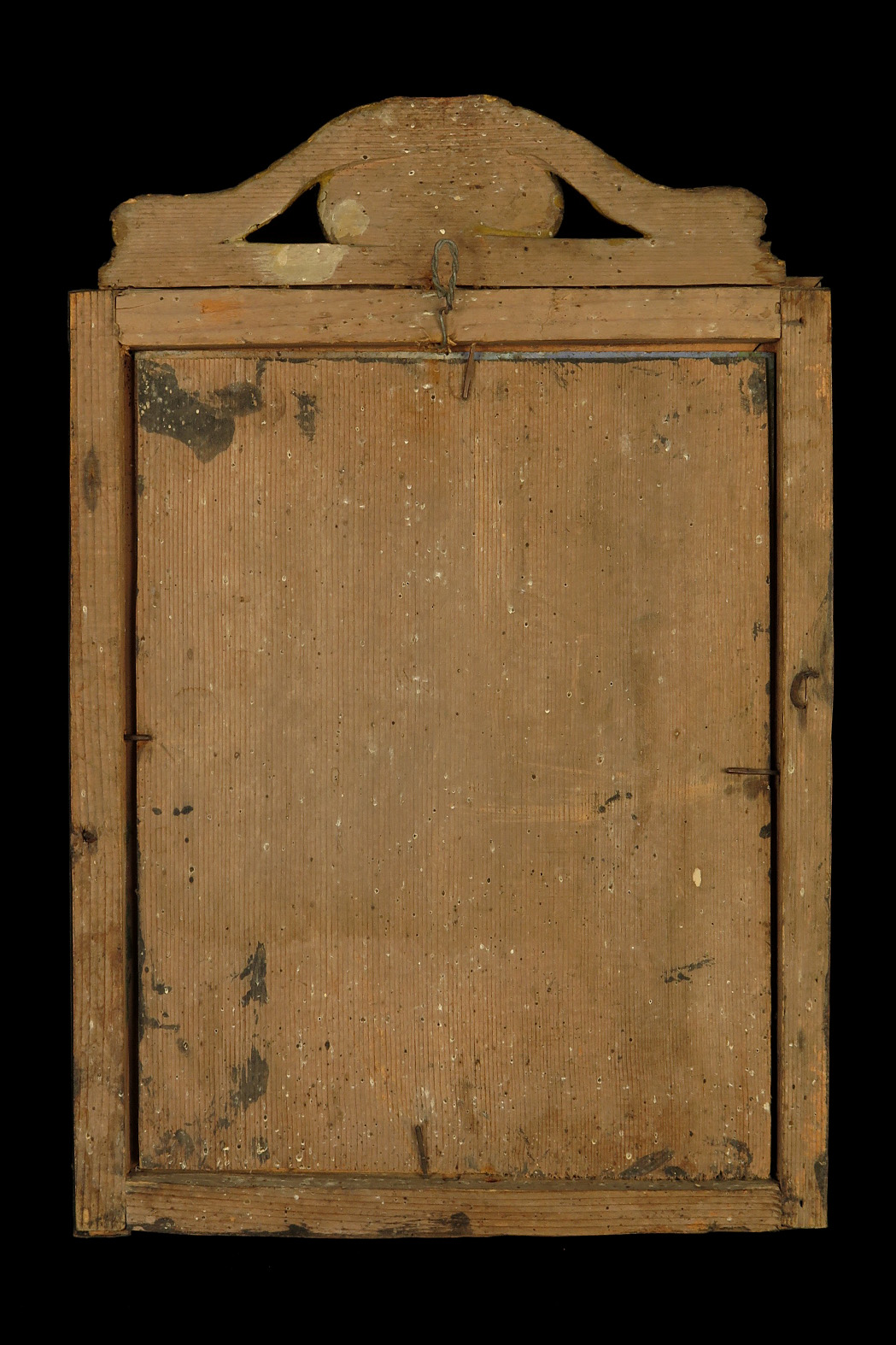 Cadre d’origine en bois sculpté, polychromie d’origine.