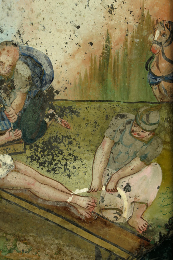 Manques de peinture et autres stigmates du temps, conférant à la pièce tout son cachet.