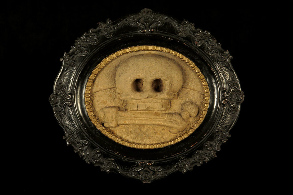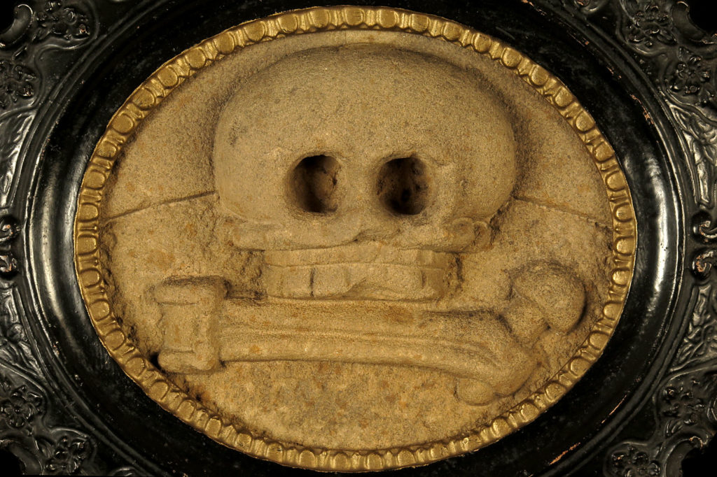 Rare sculpture en grès, Memento Mori vers 1750.